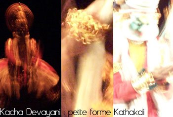 J'ai vu un spectacle de danse indienne, très... heu, codifié quoi. Des sortes de muets à grelots dorés tout à fait in-photographiables. C'est le "Kathakali" (pas "tatacali") Quant au "petite forme" inclu dans le titre du spectacle, ça décrit assez bien mon état du moment.