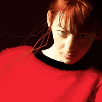 "Angry", 2006 - Peinture numérique -Justifier : (verbe transitif et ptonominal) Innocenter.- Donner raison à. -Prouver la vérité d'une chose.- [imprim.] Donner à une ligne la bonne longueur en allongeant ou en raccourcissant les blancs. - Faire passer de l'état de péché à l'état de grâce. - Se-------- : prouver son innocence, son bon droit.