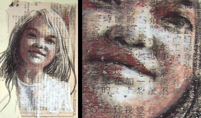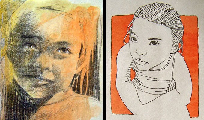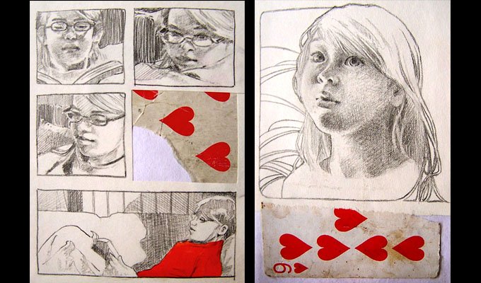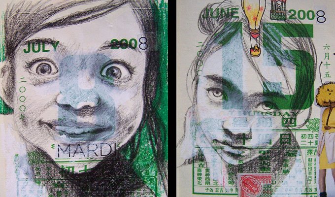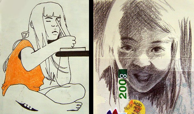 Dessin au crayon, feutre, pastel aquarelle et collages