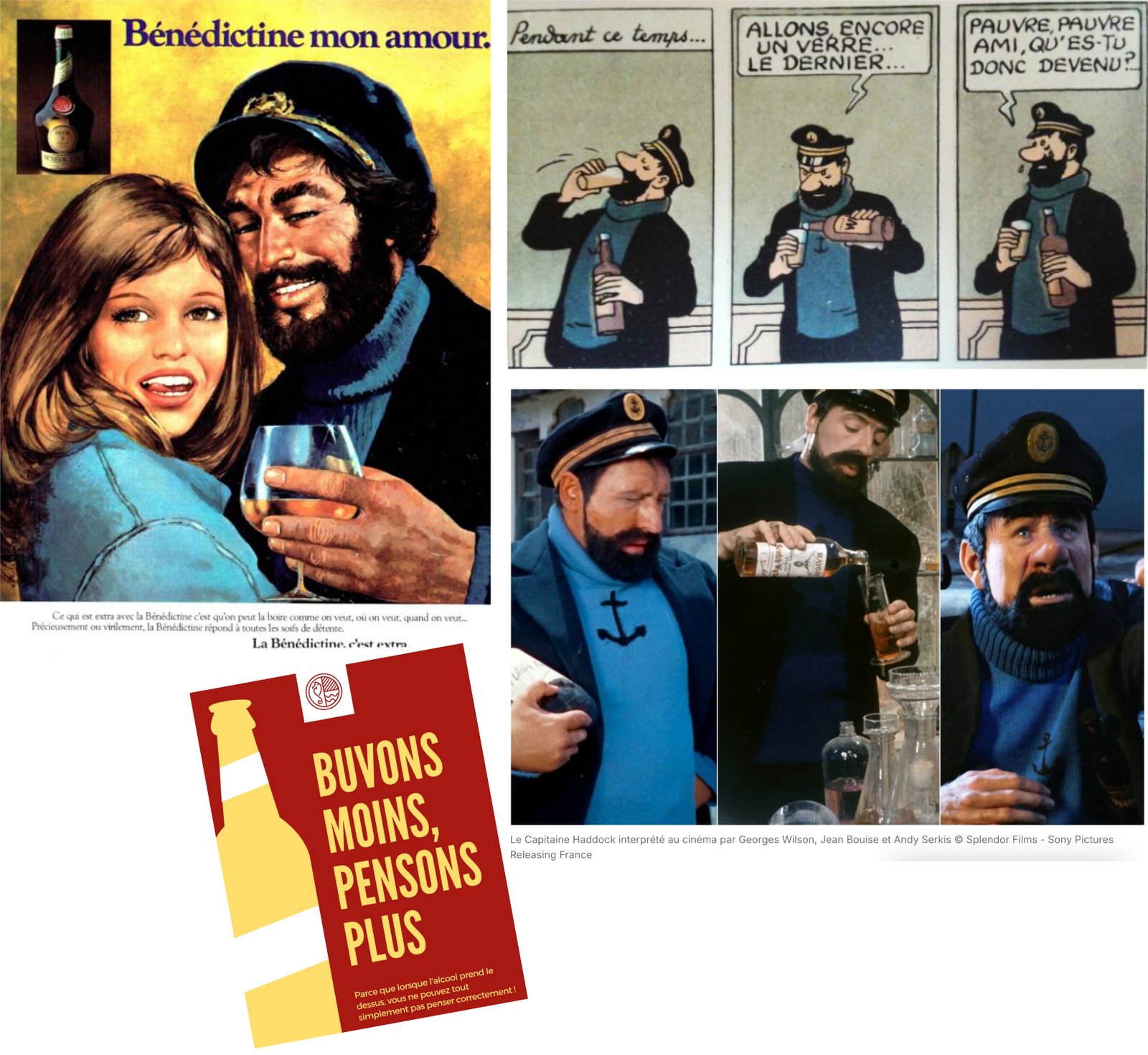 Je suis tombée sur cette ancienne réclame pour la Bénédictine, qui m'a automatiquement fait penser au Capitaine Haddock :