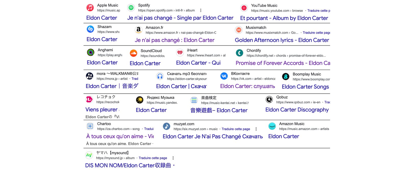 J'ai poursuivi mes recherches à travers des pages entières de liens vers des plates-formes musicales...