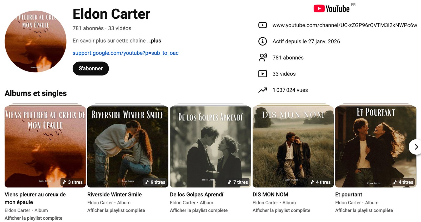 ... Mais Eldon Carter chante sur Deezer aujourd'hui :