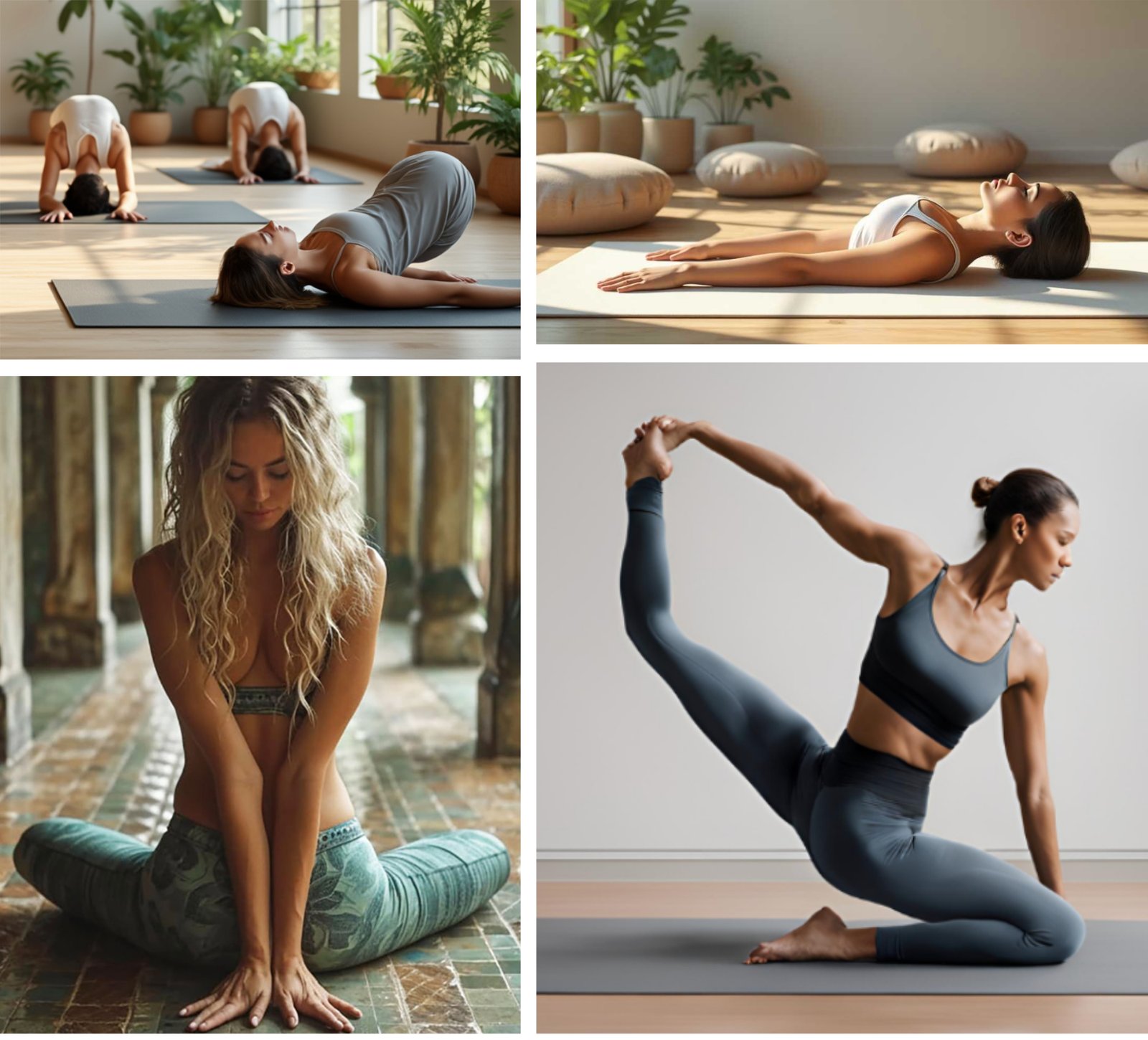 Et même si l'évolution de l'IA en à peine 2 ans est considérable, le yoga semble encore donner du fil -et des corps- à retordre aux machines. Voici une sélection d'images prises sur les pages d'entrées de sites permettant de prompter insolemment du yoga :