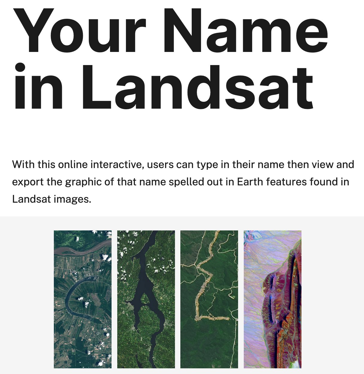 - "Your Name in Landsat" : Taper votre nom (ou un autre mot) et il s'écrit avec des images de la terre prises par satellite