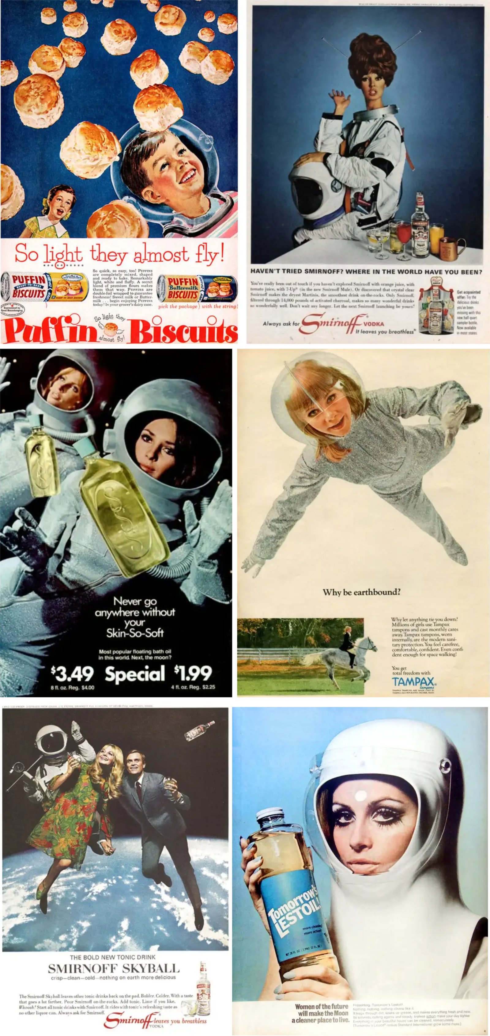 En trouvant quelques réclames utilisant l'imaginaire de l'espace, je me faisais la réflexion que le rêve de l'ailleurs était quand même plus présent dans les années 70, en tout cas dans l'imagerie véhiculée par les pubeux...