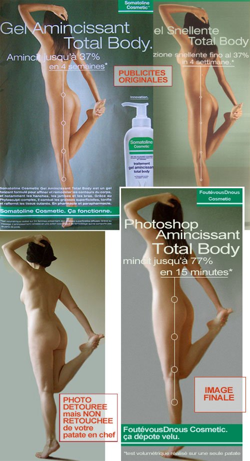 En voyant cette publicité dans un magazine, j'étais interloquée par la forme des cuisses du mannequin -entre autres choses.