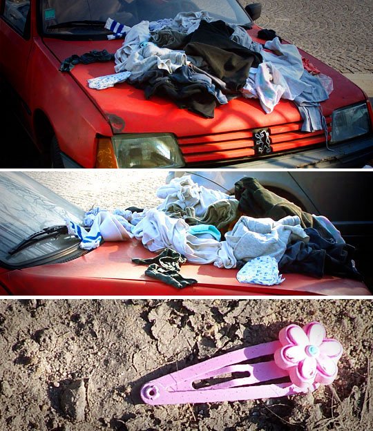 Comme un curieux écho au dernier post, la garde-robe fournie gracieusement ce matin par la rue...