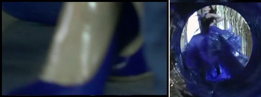 les escarpins bleus visibles dans le making-of.