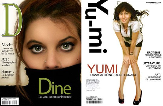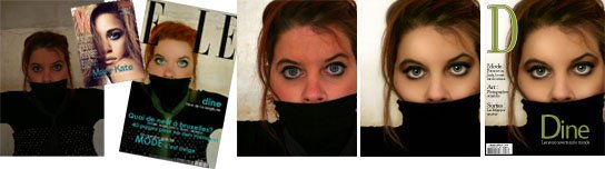 Ci-dessus, la fausse couverture de magazine que Dine avait réalisée et le travail que j'ai fait à partir de la même photo de base, à sa demande.