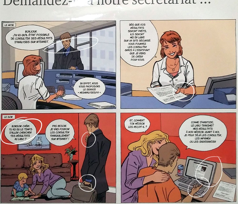 Ce matin à l'hôpital, je tombe sur un panneau à propos des envois de résultats d'analyses par internet. C'est en effet pratique. La boite qui s'occupe de ça est une grosse chose avec des