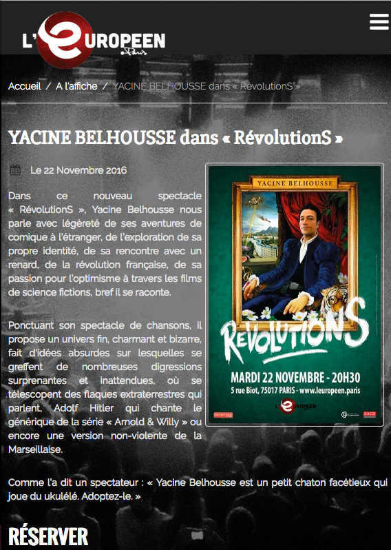 Donc si vous aimez l'humour subtil avec une pointe d'absurde et que vous êtes à Paris, réservez pour le 22 novembre (CLIC) !