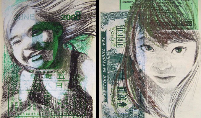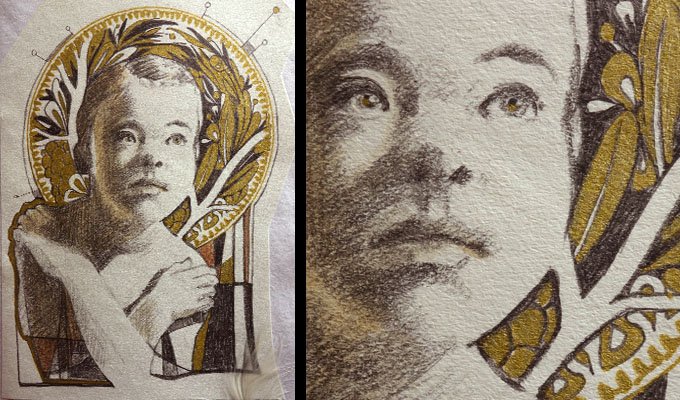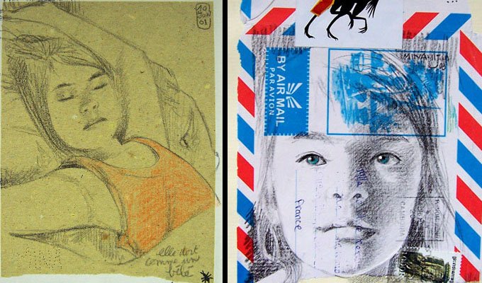 Dessin au crayon, feutre, pastel aquarelle et collages