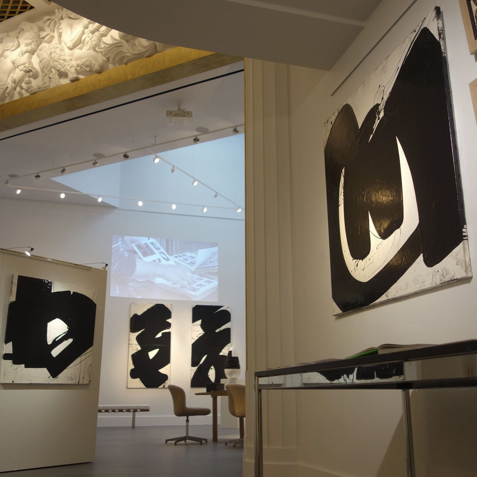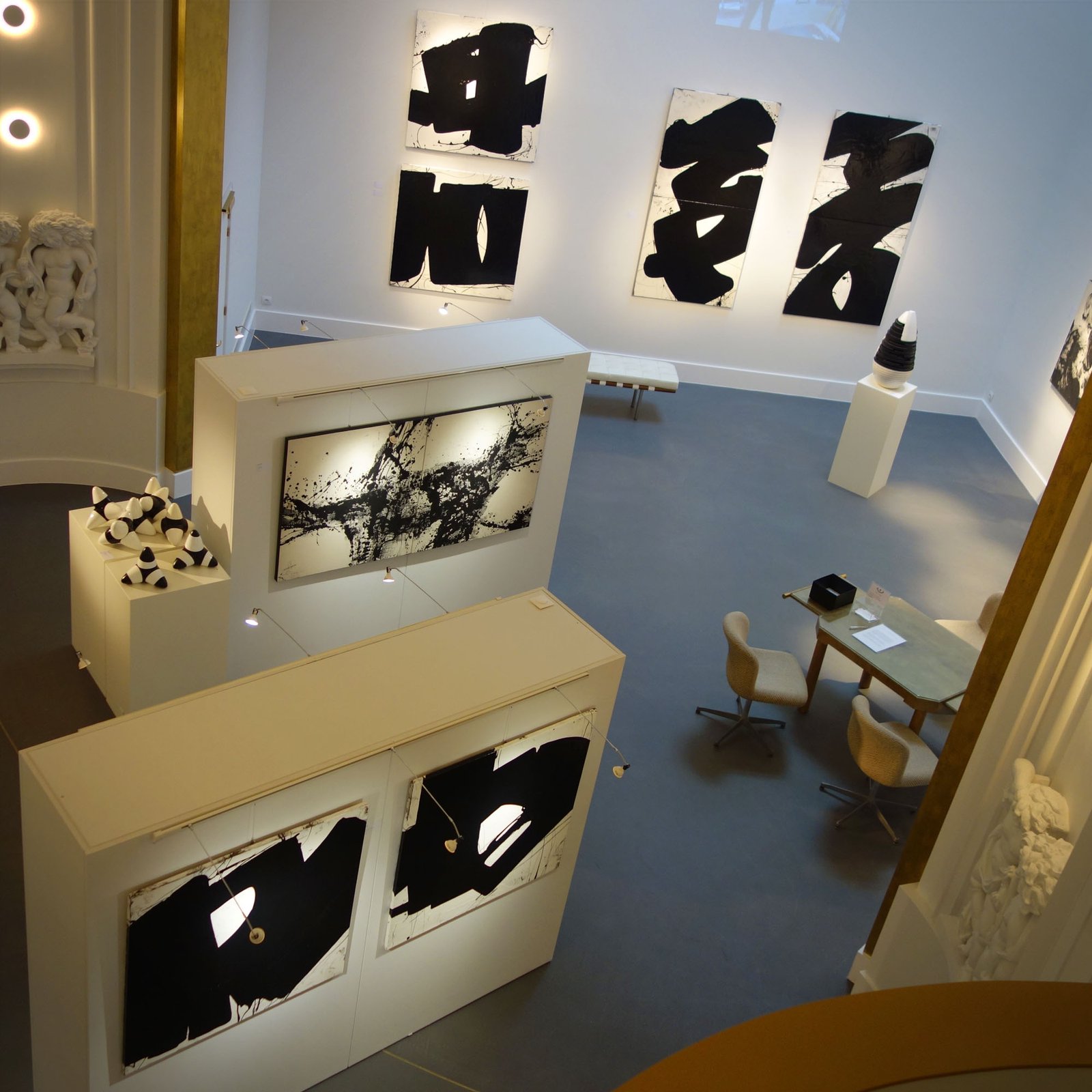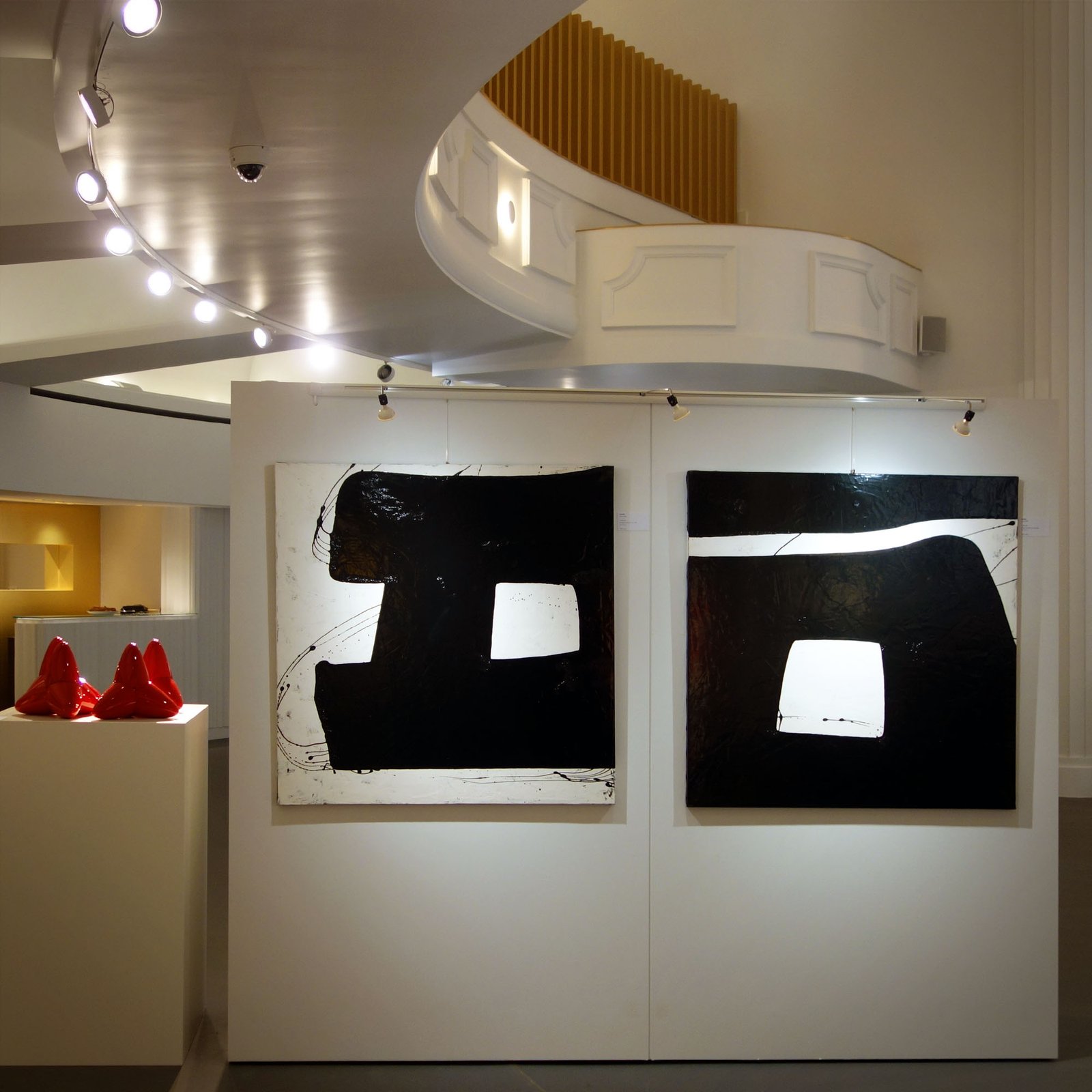 "Aux murs, les peintures de Cali Rezo donnent le vertige. Le critique Étienne Pécheux signale à juste titre que « la radicalité de la peinture de Cali Rezo passe par l’utilisation d’une palette essentielle de noirs et de blancs où les formes révèlent un sens, un signe, une écriture qui fait écho à une mémoire intime du geste. [ …J La texture balance entre des vides de noir mat, des satinés évoquant le galet poli, les brillances de reflets captant l’environnement. Ses couleurs, son mouvement, sa profondeur. » Une oeuvre magistrale, mordue d’inquiétude et fondée sur l’invention audacieuse d’un alphabet propre à l’artiste."