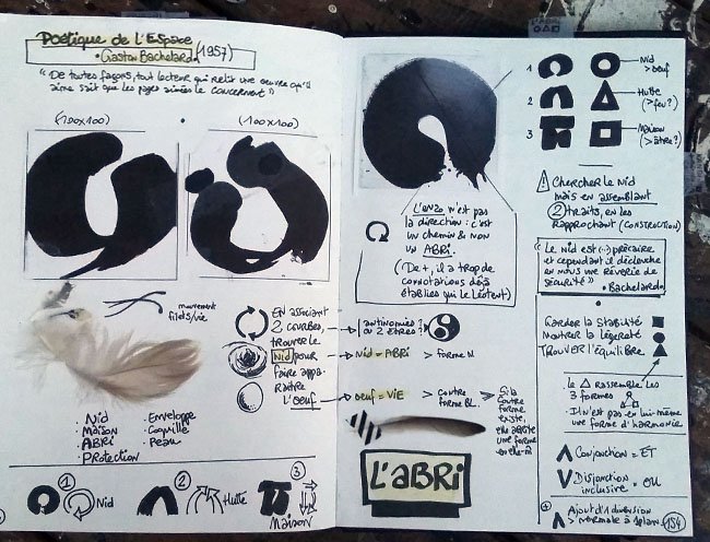 A year ago, I was looking for new inspirations for my work when I received an impromptu message in my mailbox: a handwritten letter annotating an excerpt of Bachelard's "Earth and Reveries of Repose". My kind neighbour had spotted a few sentences that she thought echoed with my paintings. I wandered from her daydreams to Bachelard's and rediscovered his work in a new light. His "Poetics of Space", among other books, put my feelings into words. It was all coming together at the right time. From Bachelard to Deleuze, via the statements of the Bokujinkai, I spent the summer of 2020 reading and making connections between what was becoming obvious.