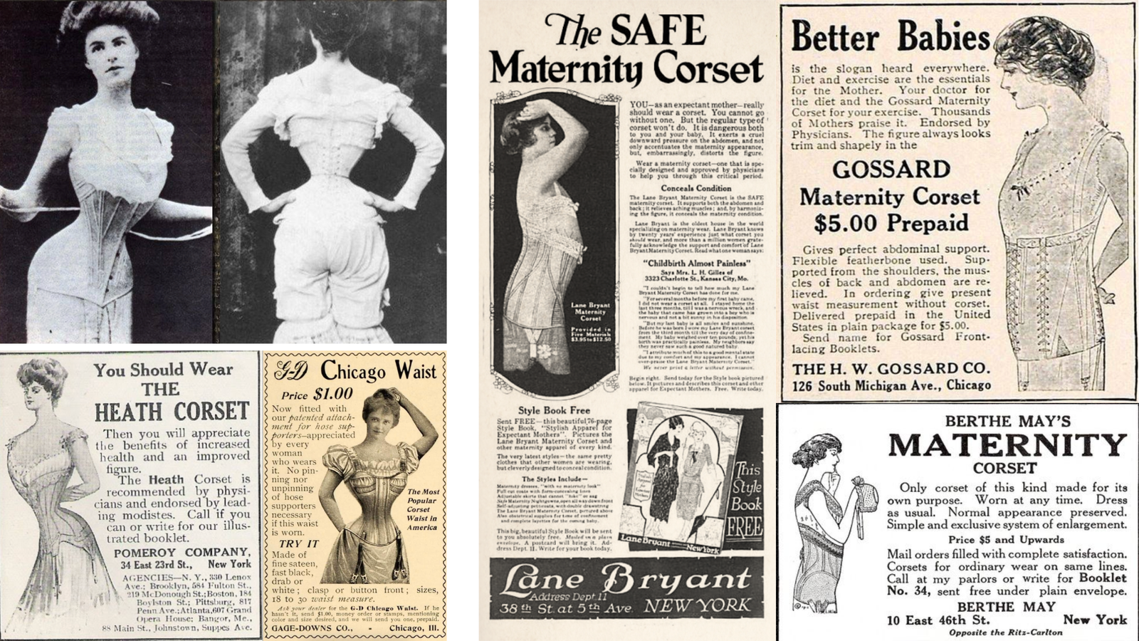 Déjà que le concept du corset laisse à désirer, même s'il était honteusement vendu pour ses bienfaits de santé, l'idée d'un "corset de maternité" me semble encore plus abominable...