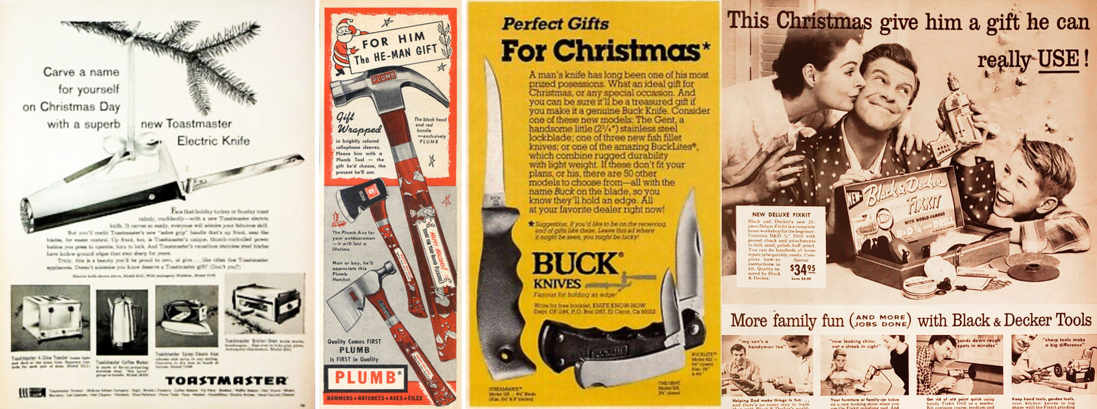 Attassion en ouvrant vos présents. publicités pour des outils - cadeaux de noël - couteau - marteau - perceuse